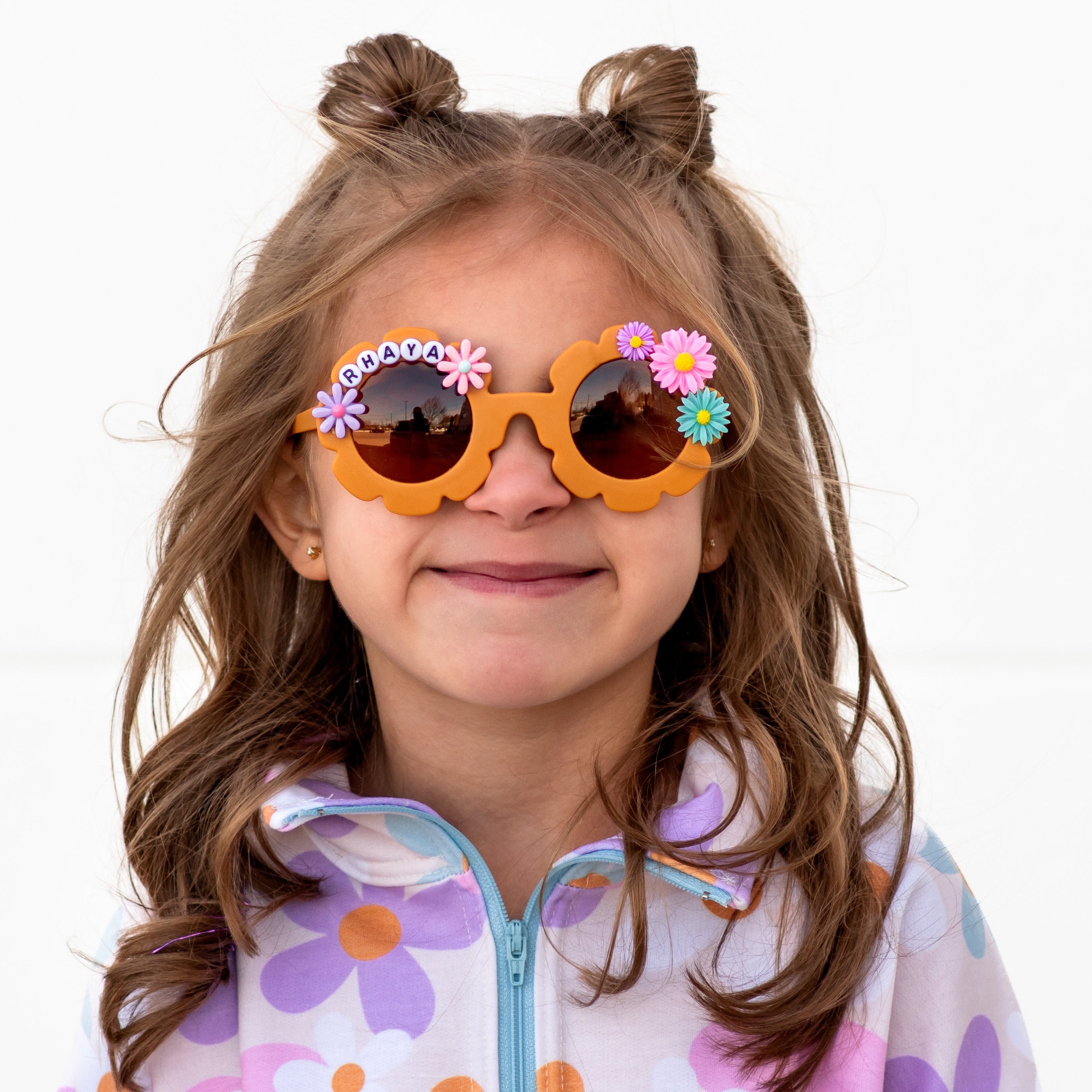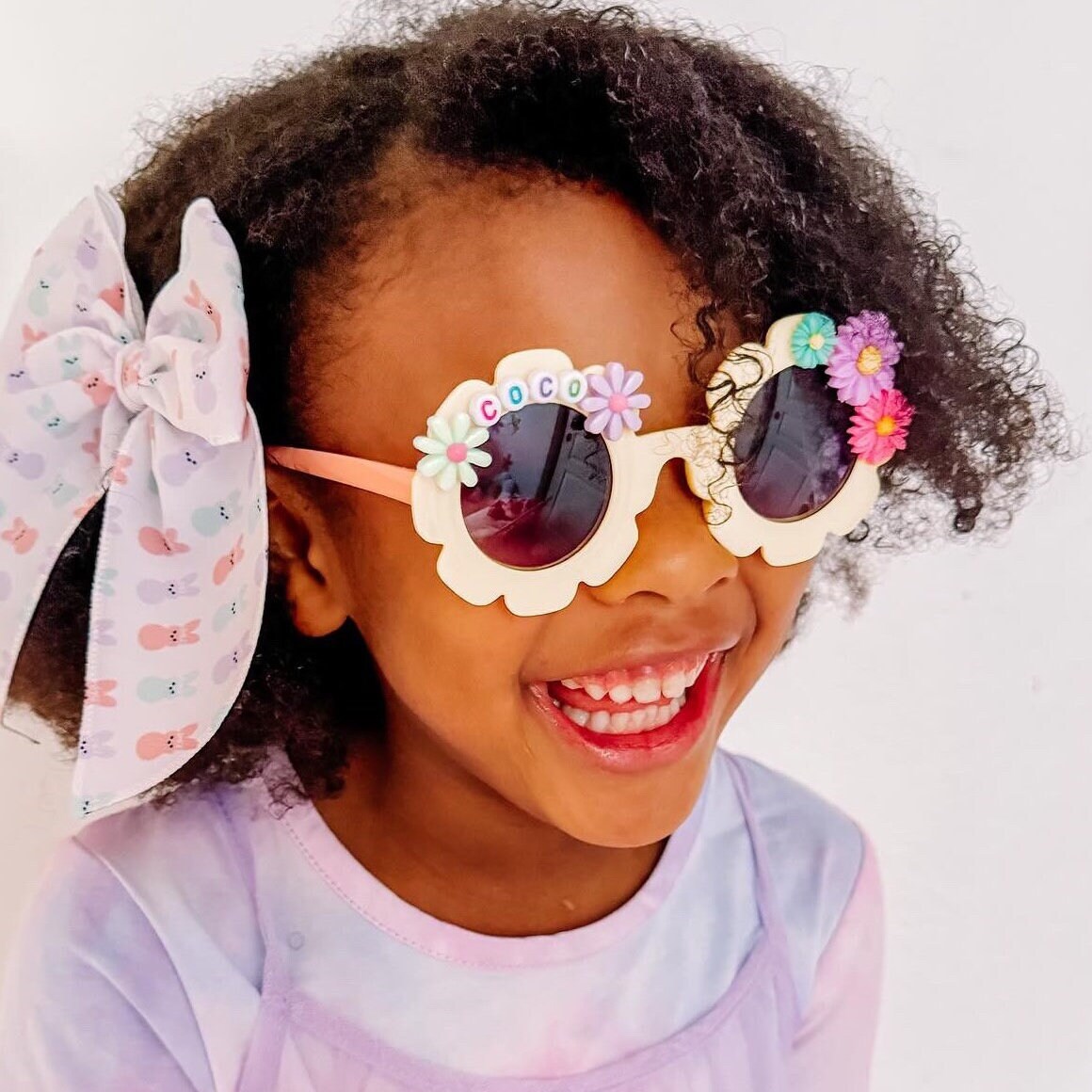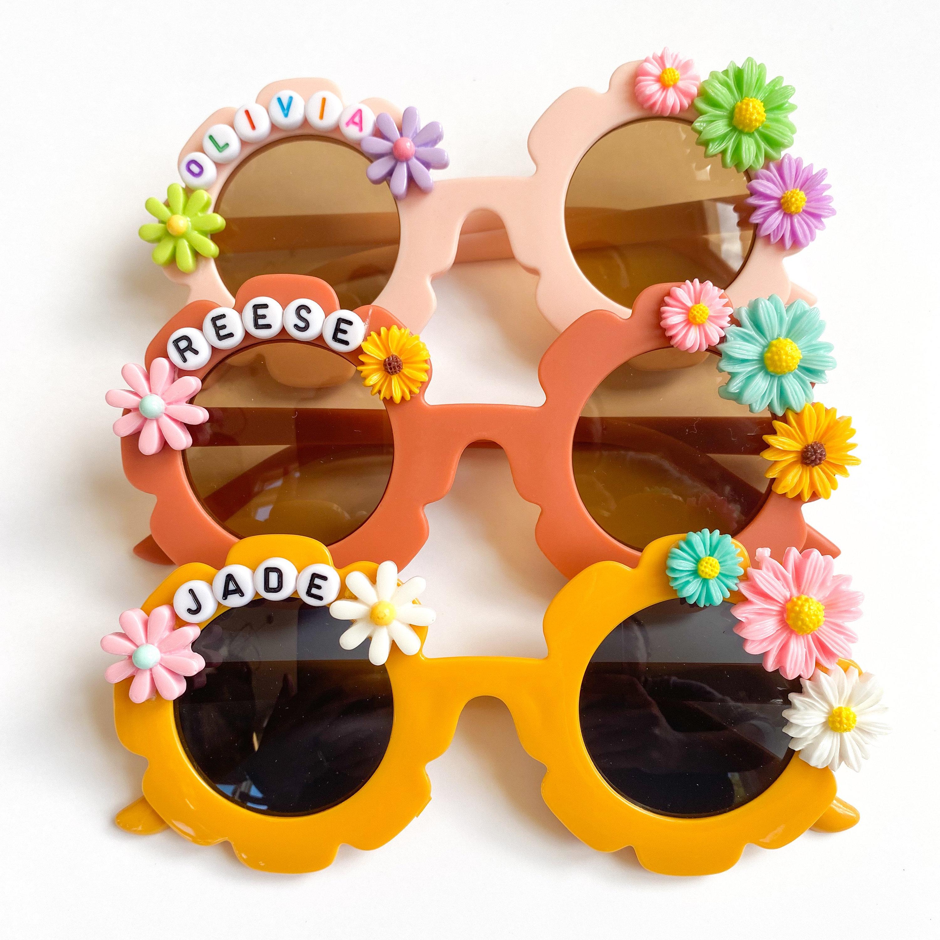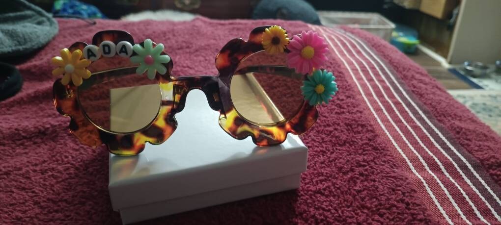 Listing is for a pair of flower sunglasses with personalized design and flower accents. Made to order.