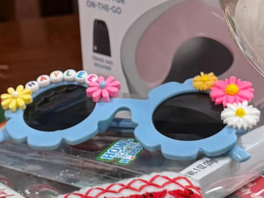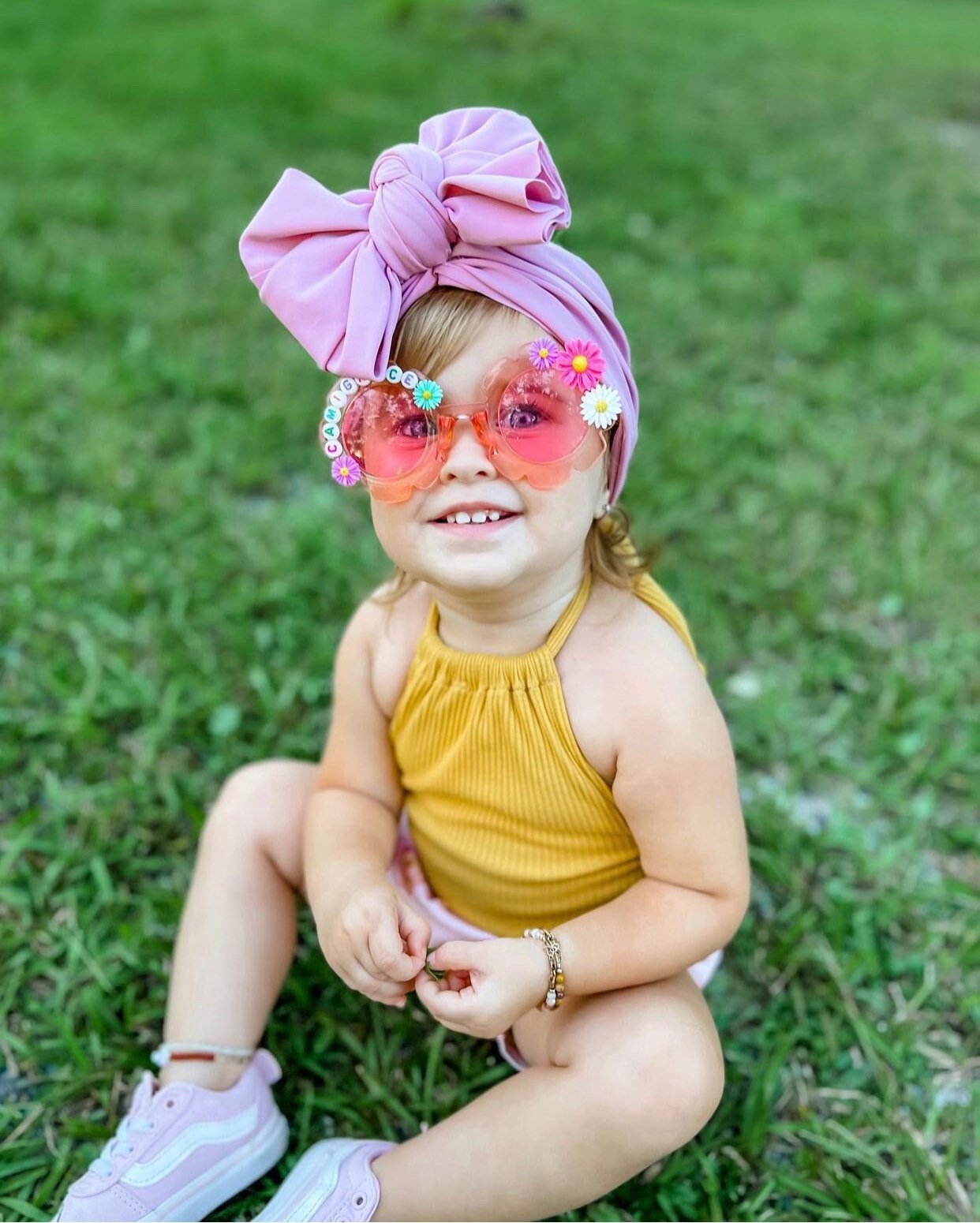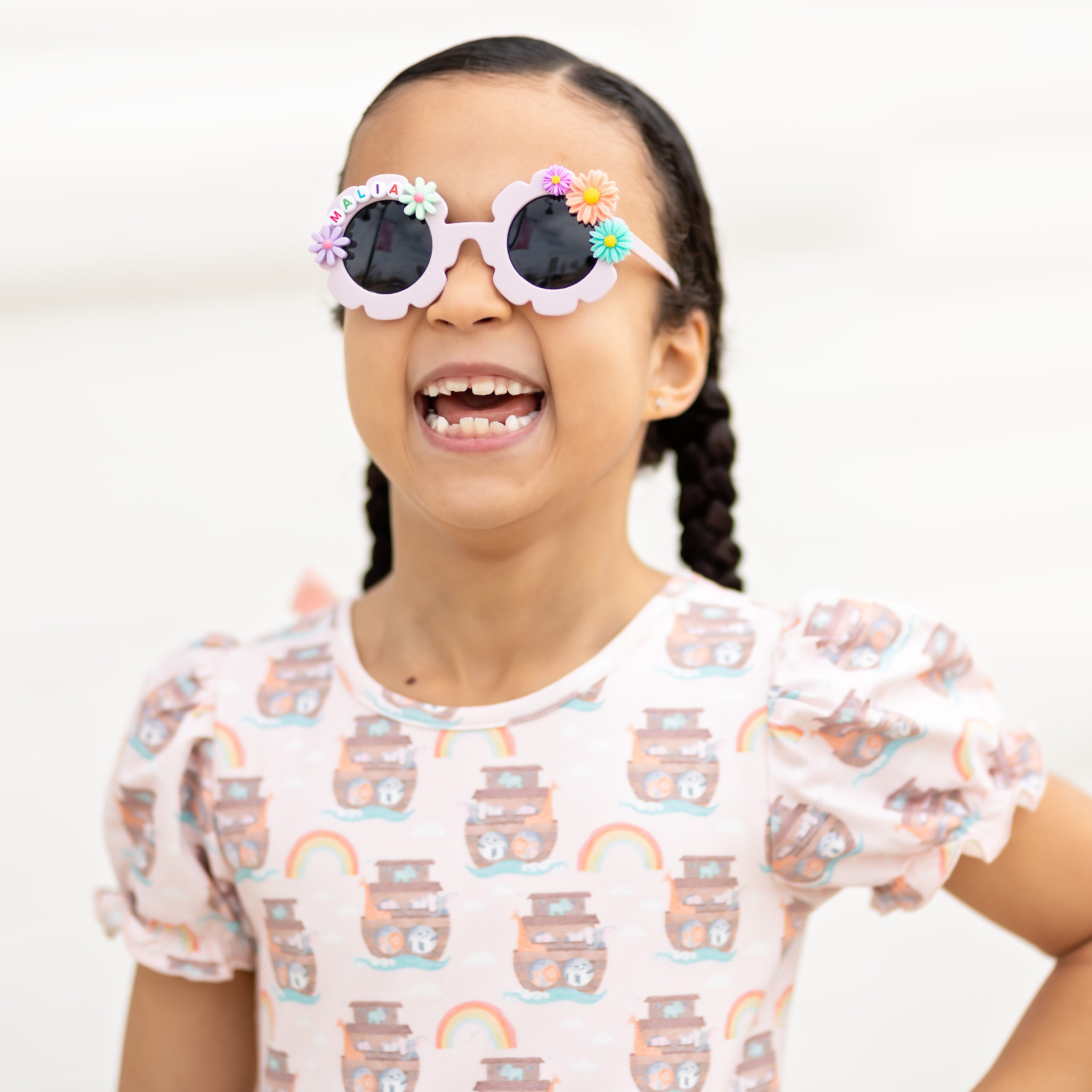 Listing is for a pair of flower sunglasses with personalized design and flower accents. Made to order.