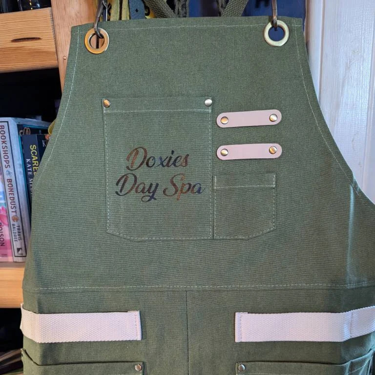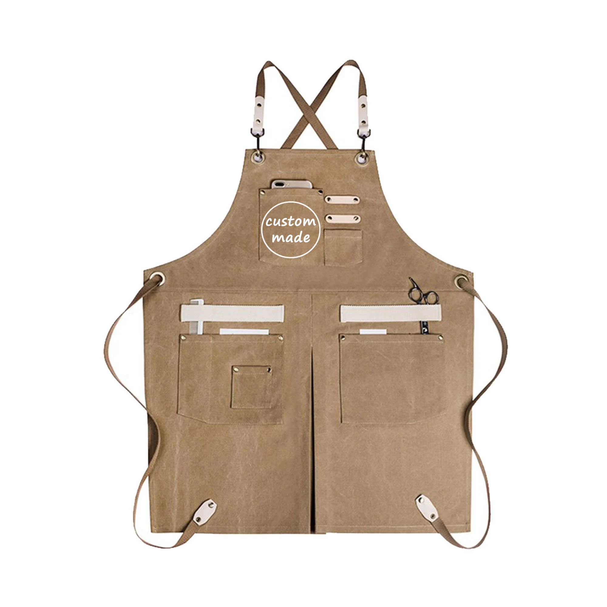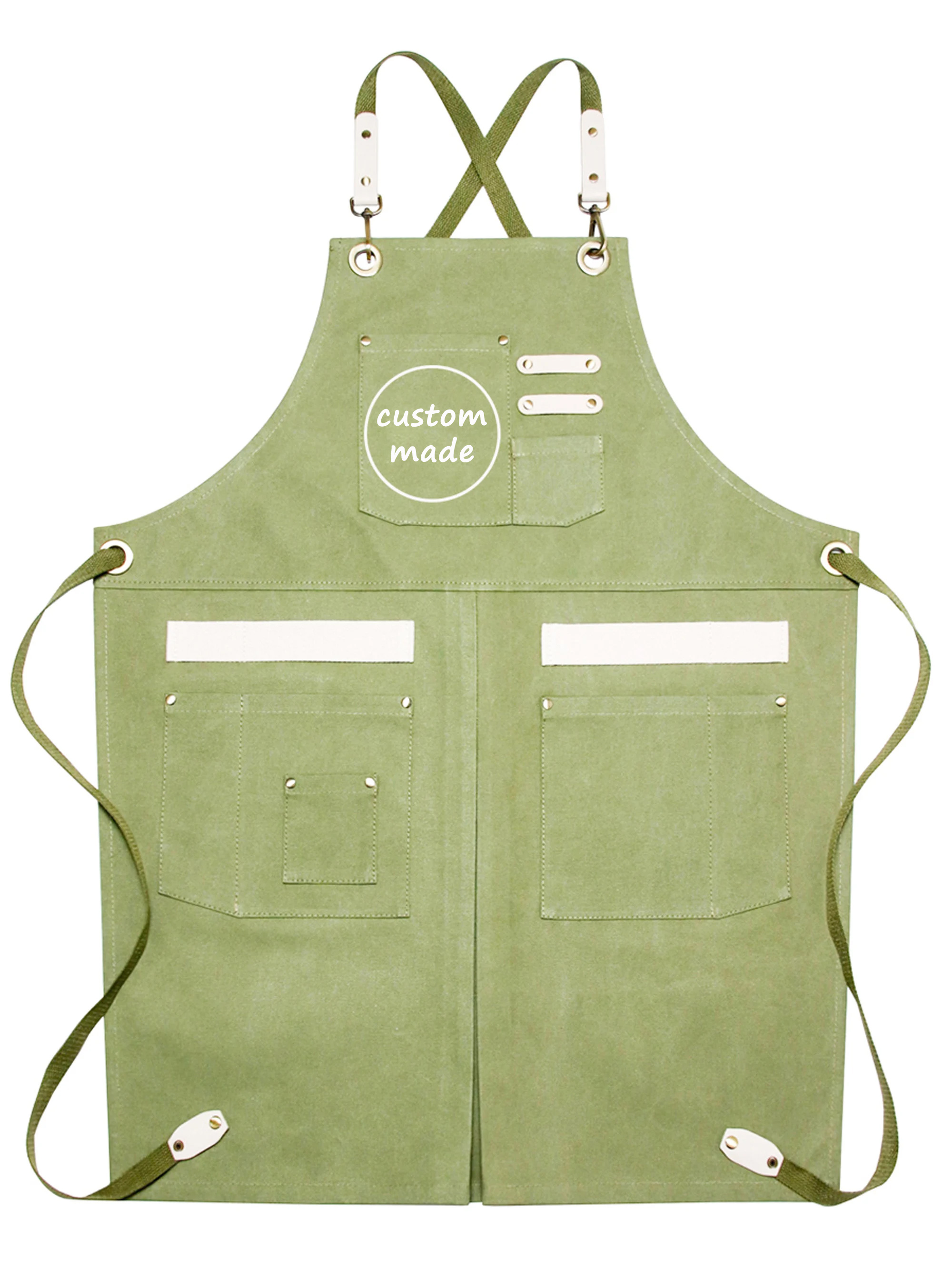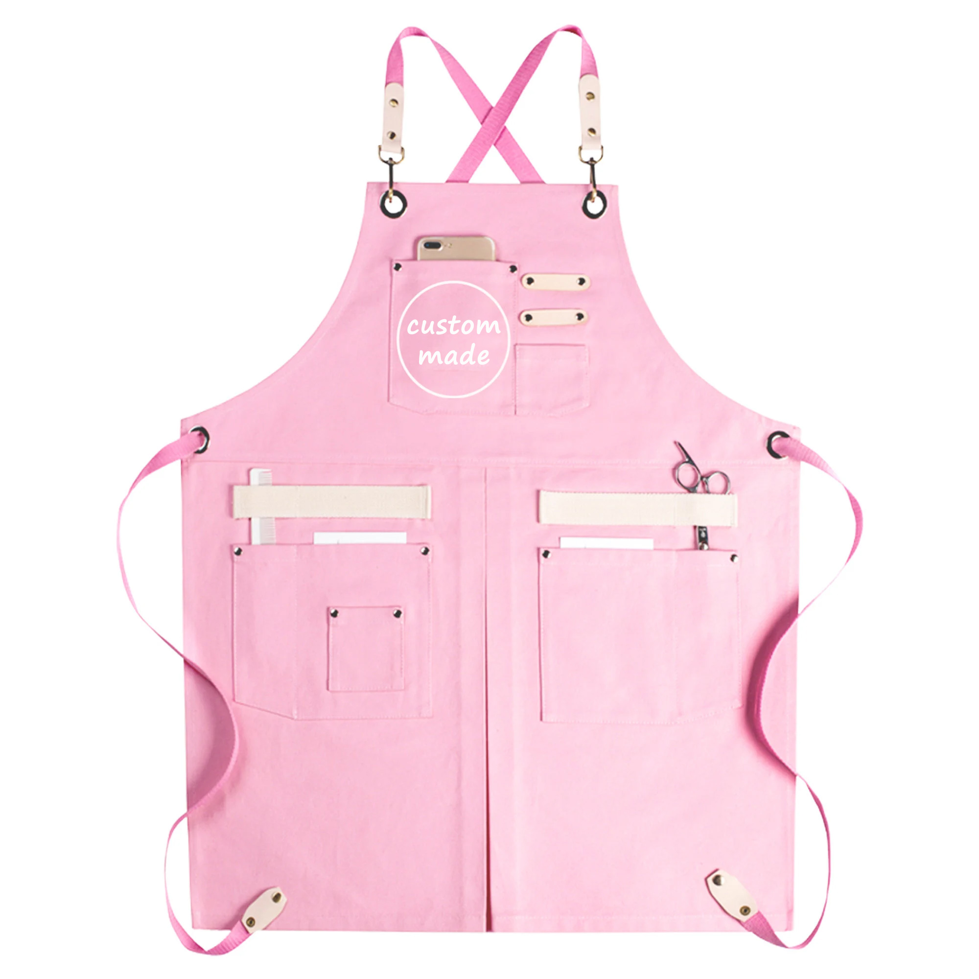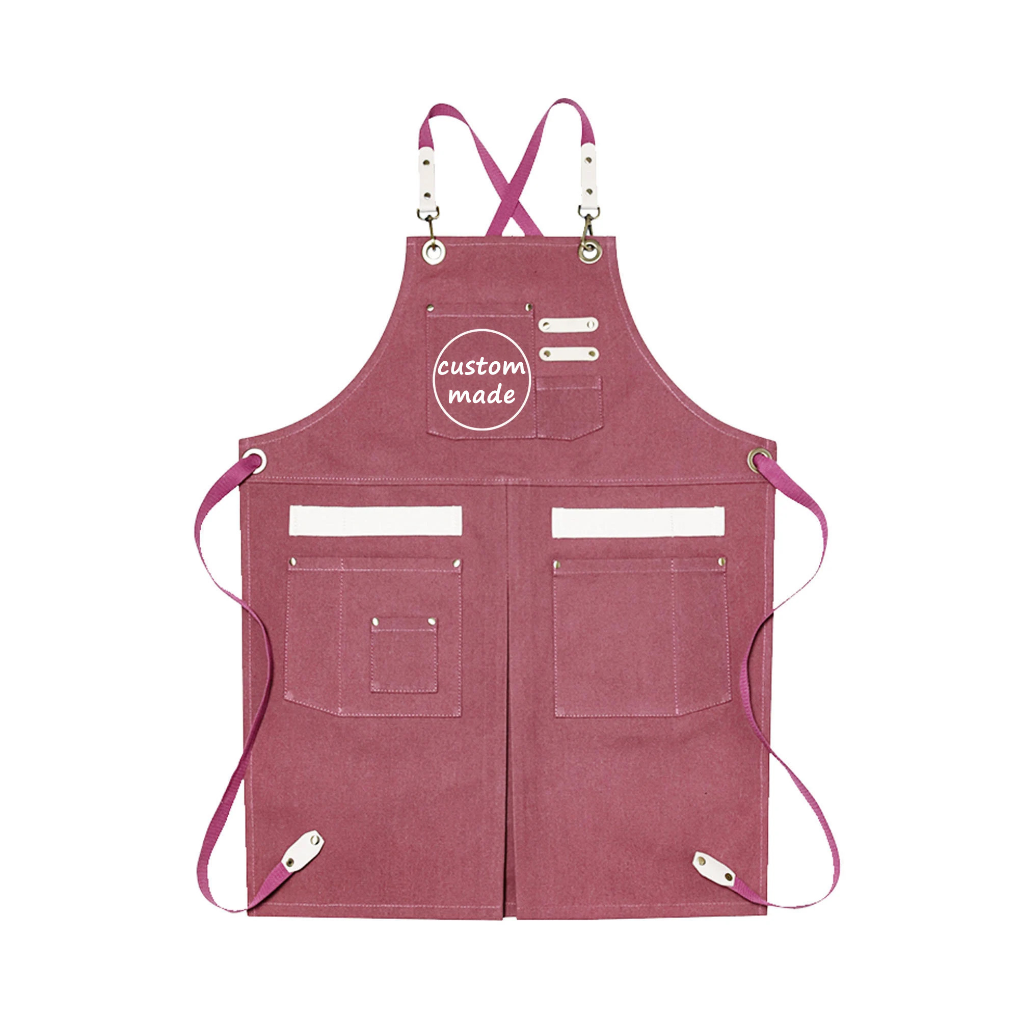 Personalized Name or Logo Women's Canvas Apron with Adjustable Straps and Large Pockets, Florist Nail Tech Water-Resistant Waitress Aprons, Gift for Her