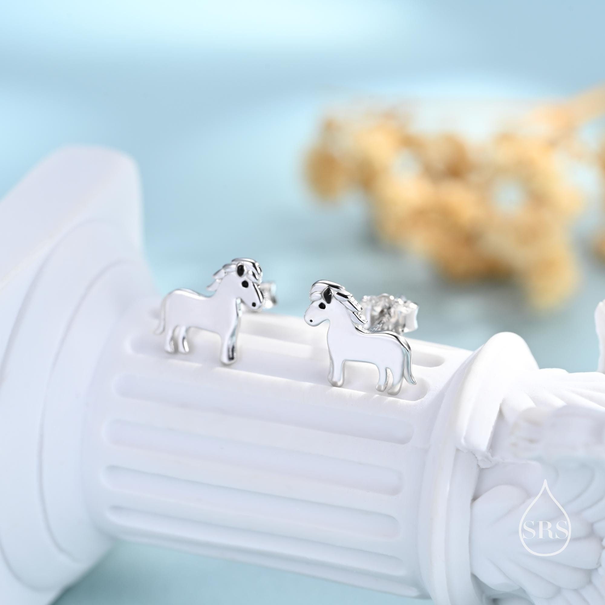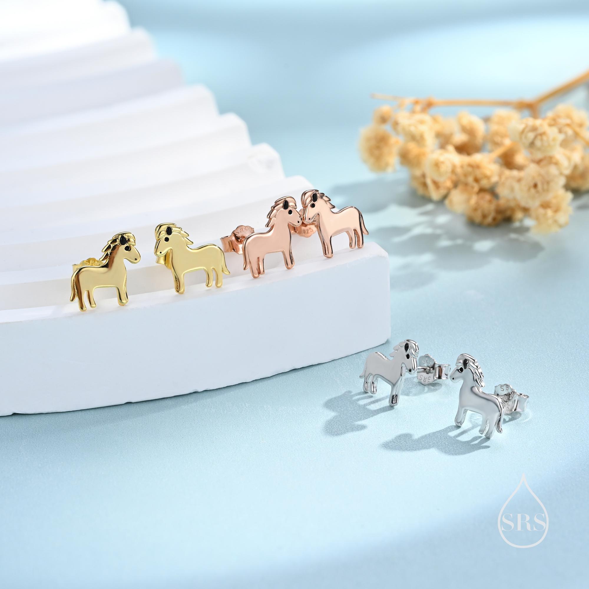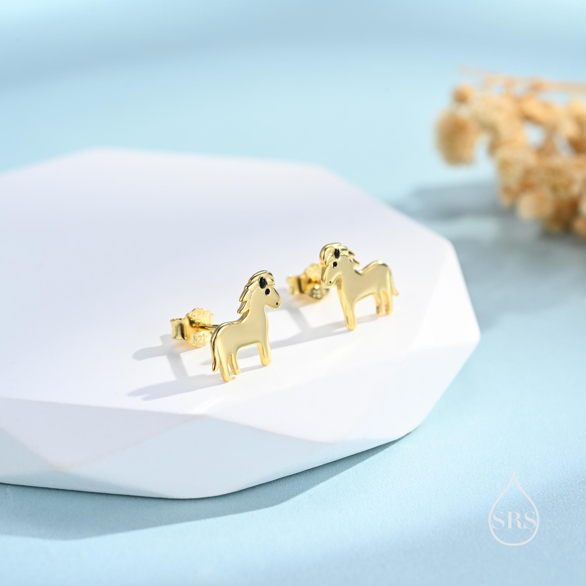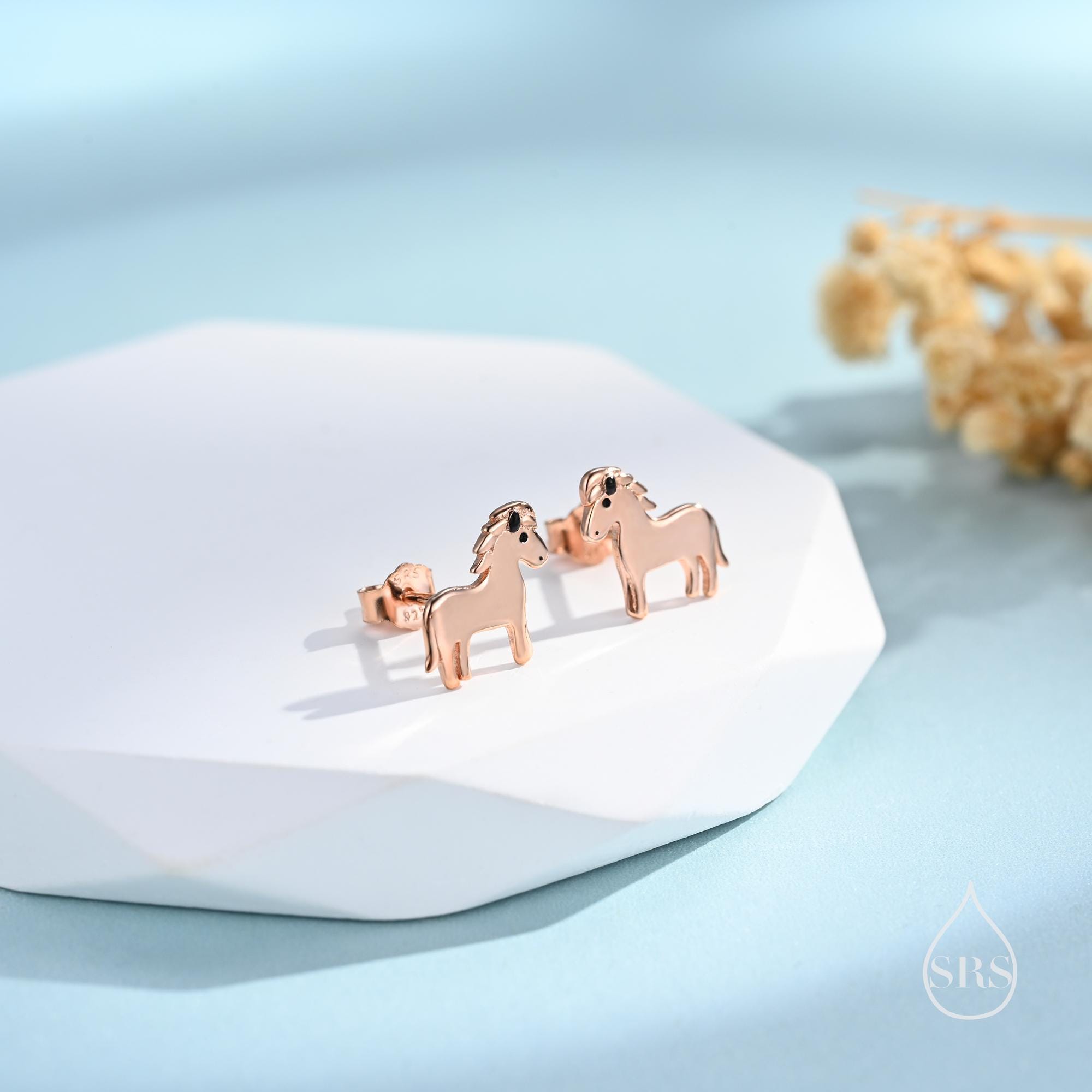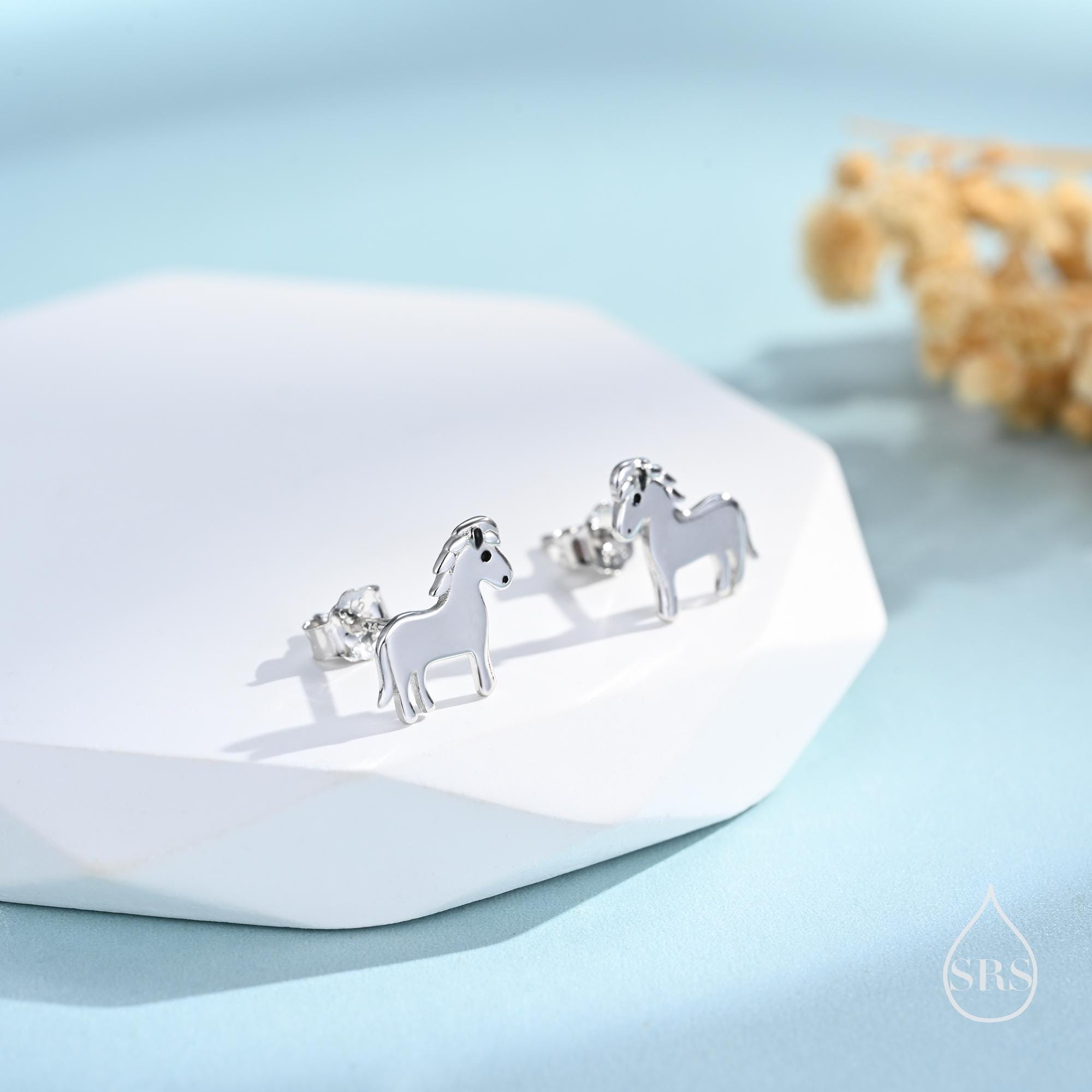 Shetland Pony Stud Earrings, Sterling Silver, Silver or Gold or Rose Gold, Sterling Silver Cute Pony Earrings, Farm Earrings